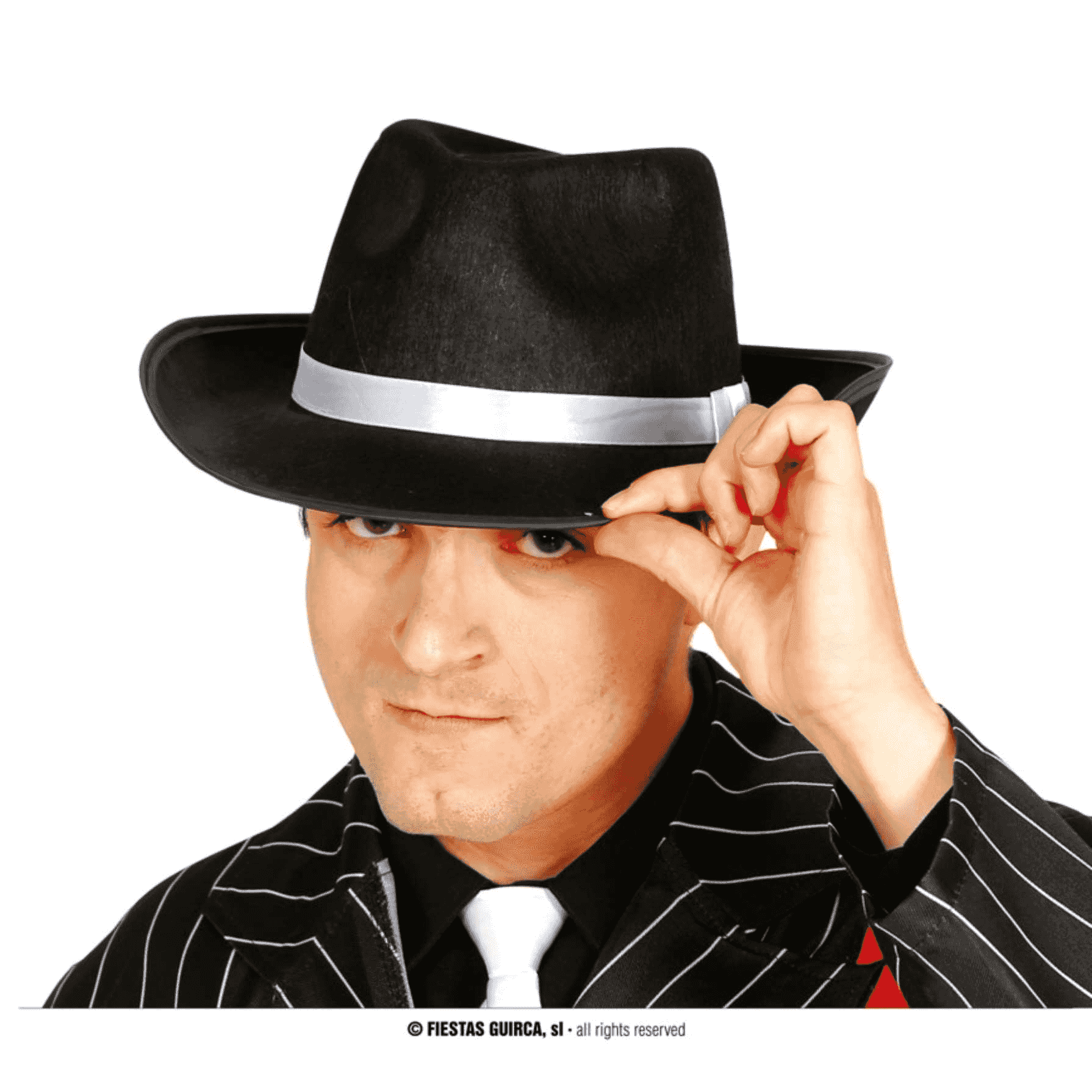 Sombrero Gánster Negro Con Cinta Blanca