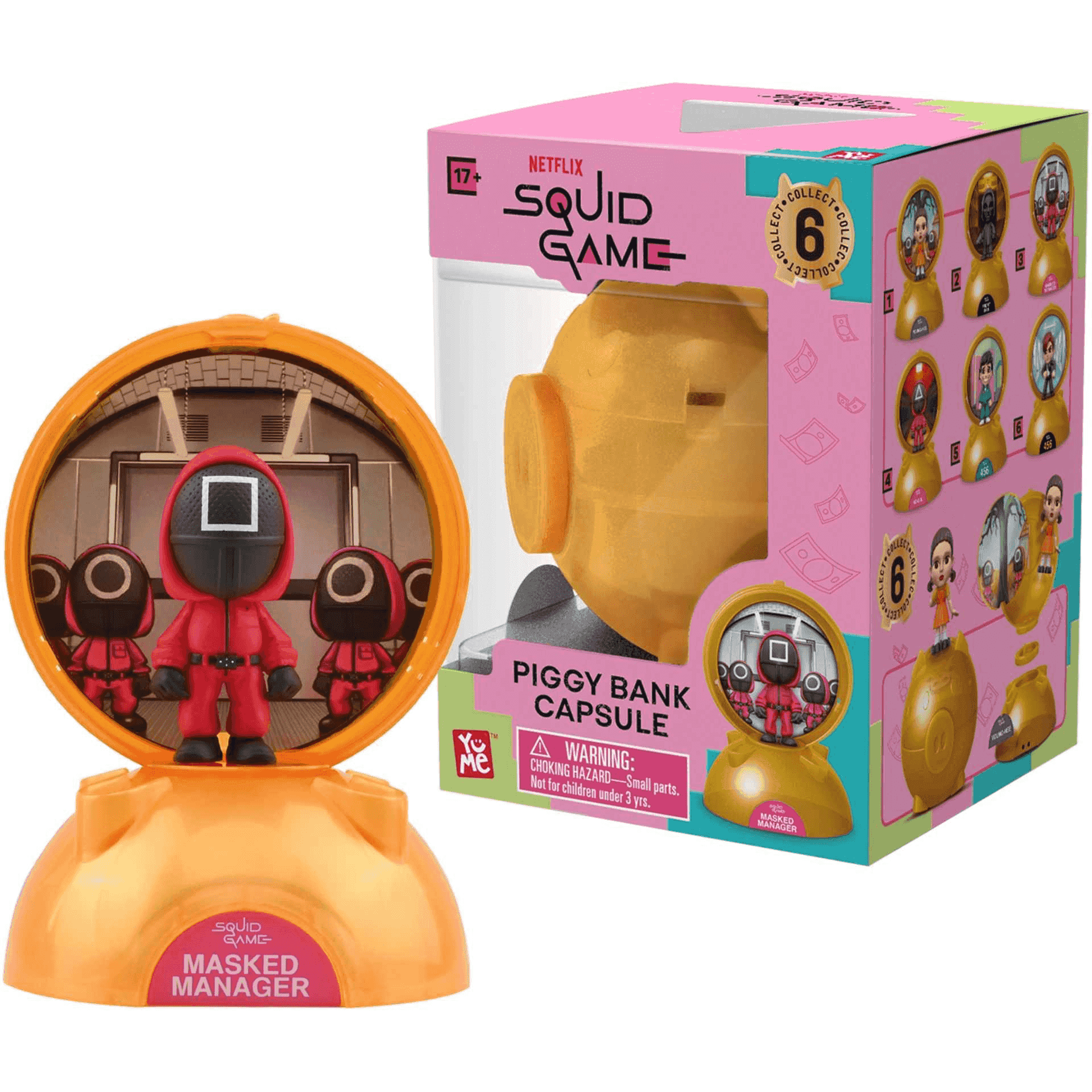 Revive la emoción de la serie Squid Game con las Piggy Bank Mystery Capsules de YuMe Toys. Cada cápsula contiene una figura coleccionable de 6-7 cm y una hucha inspirada en los icónicos símbolos del juego.