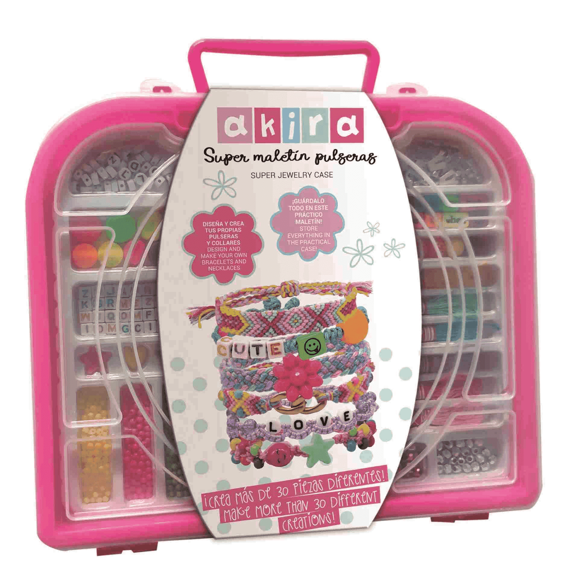 El Super Maletín Pulseras es la elección ideal para los pequeños creativos que aman diseñar y crear sus propios accesorios de moda. Este maletín compacto y práctico está repleto de todo lo que necesitas para crear pulseras y collares únicos y personalizados. Ya sea en casa o de viaje, este maletín te permitirá llevar tu pasión por la moda y la creatividad a cualquier lugar.
