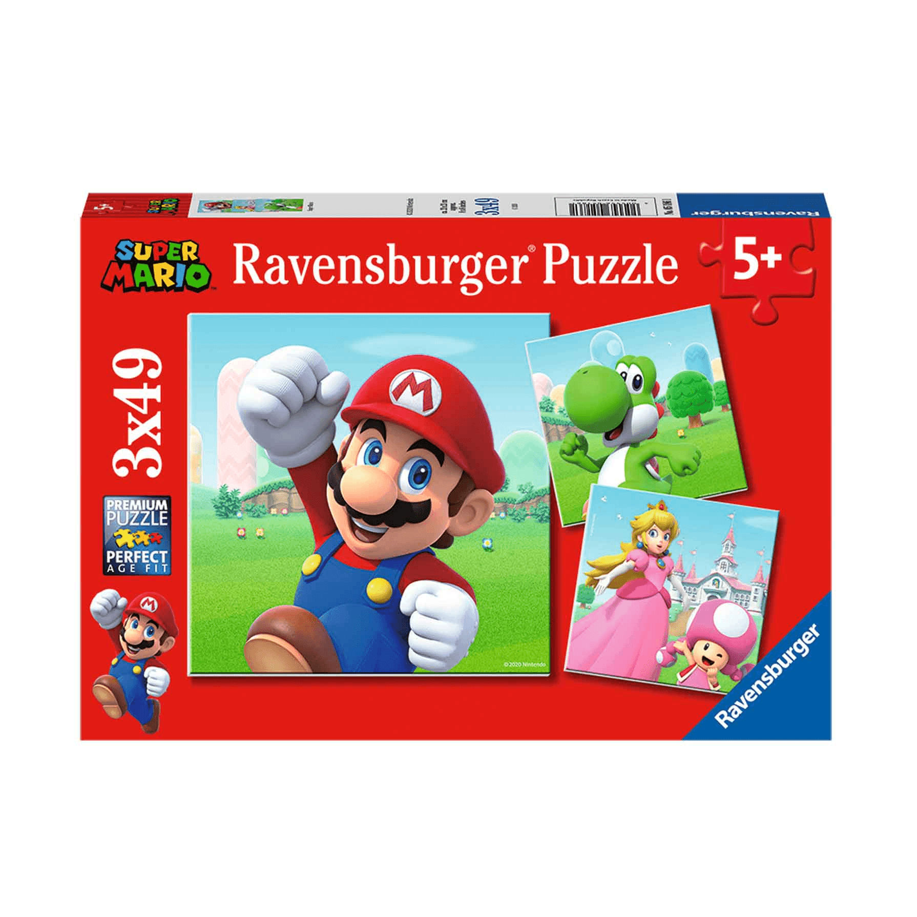 - Contiene 3 rompecabezas de 49 piezas con motivos de Súper Mario.