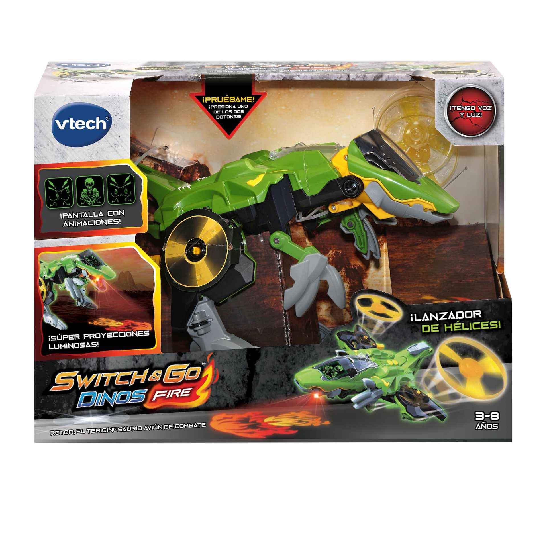 ¡Crea tu universo Switch & Go Dinos! Deja volar tu imaginación con las historias de los monstruos de la colección: cada uno tiene una personalidad y características diferentes. Ponlos a prueba compitiendo unos contra otros y... ¡que gane el mejor! ¡Los Switch & Go Dinos Fire son aún más impresionantes con sus súper proyecciones luminosas y lanzador de discos! "Aquí está Rotor, el tericinosaurio" "¡Enemigos detectados! ¡Hélices fuera!