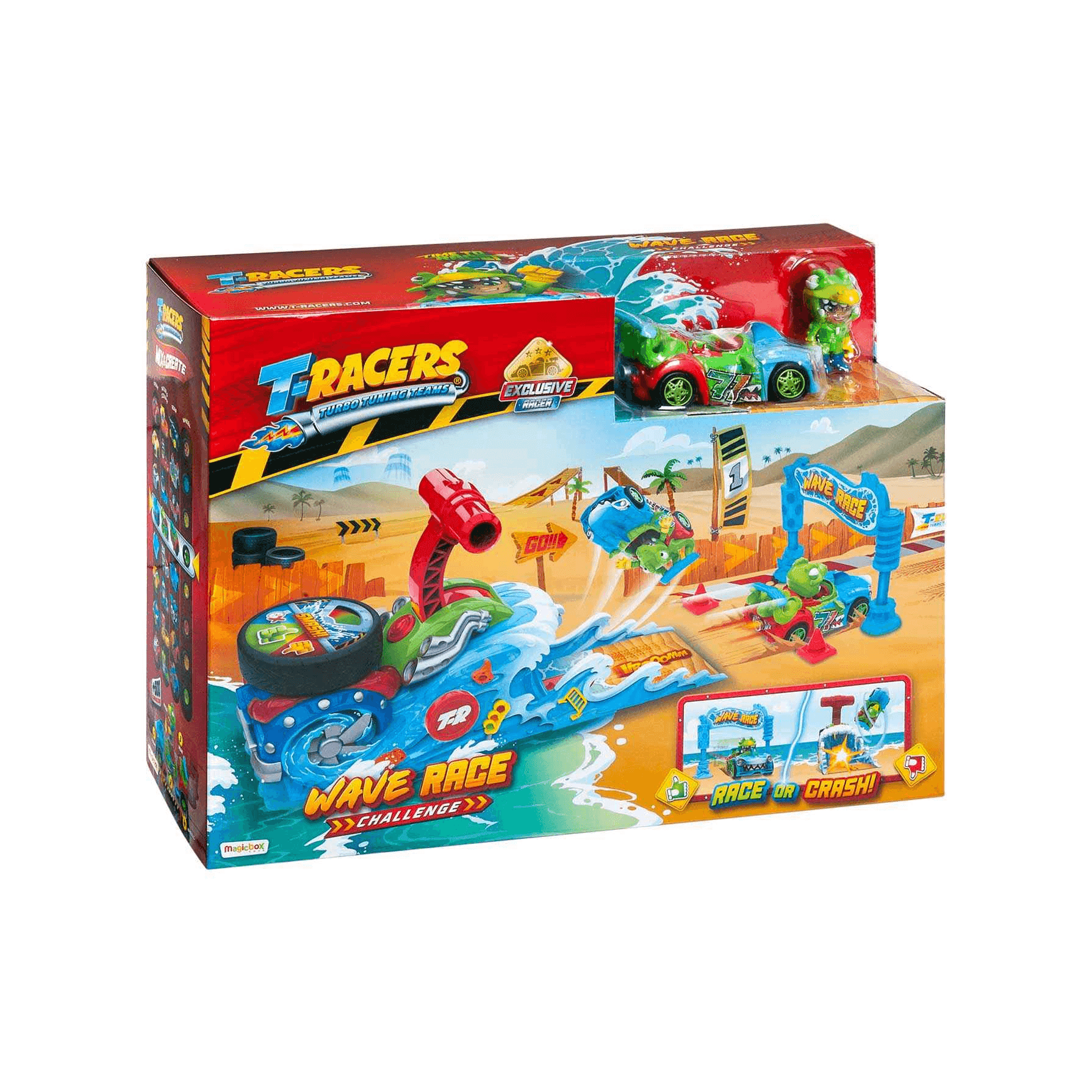 El playset contiene: 1 lanzador, 1 T-Racer exclusivo (piloto + vehículo) 1 cartel y 2 conos.