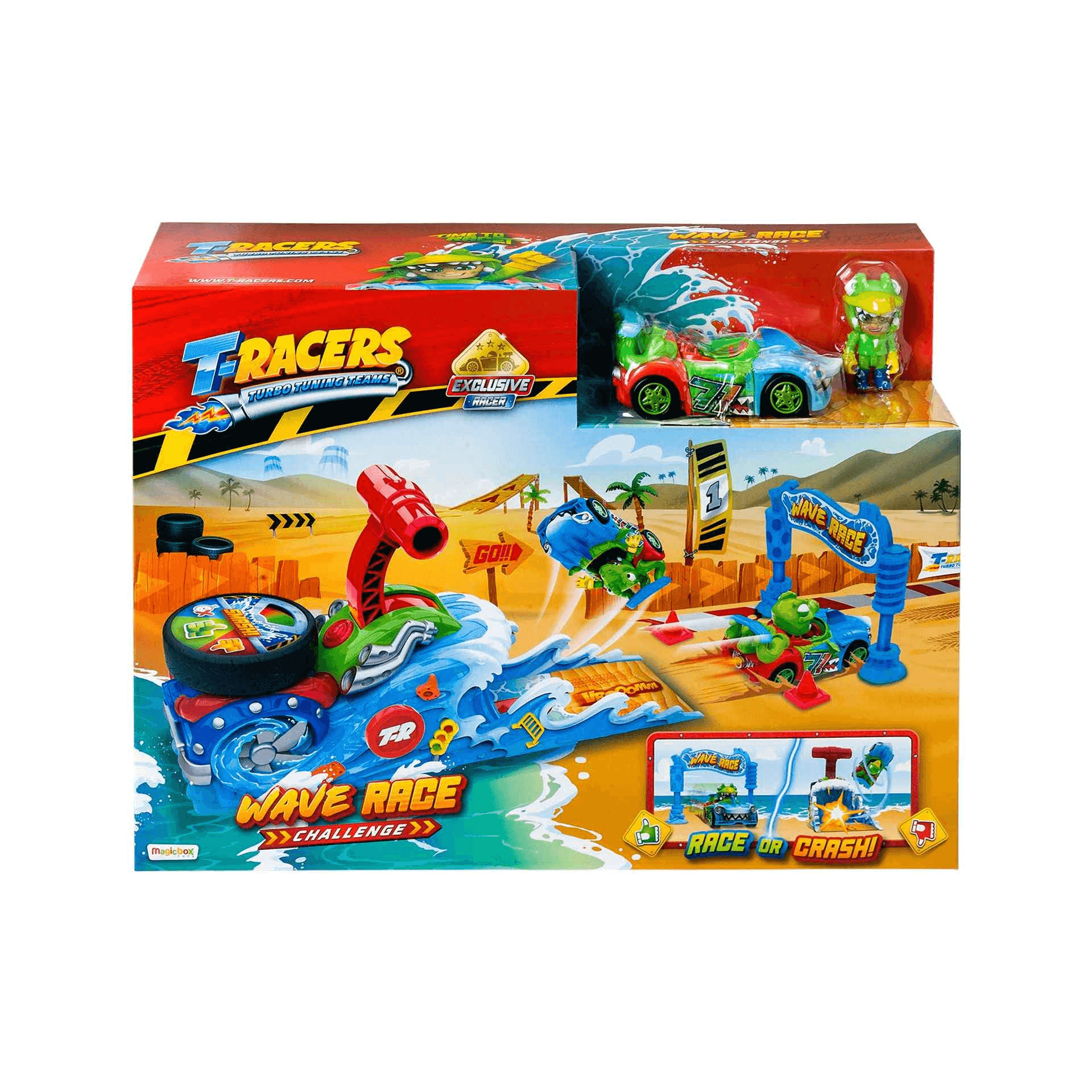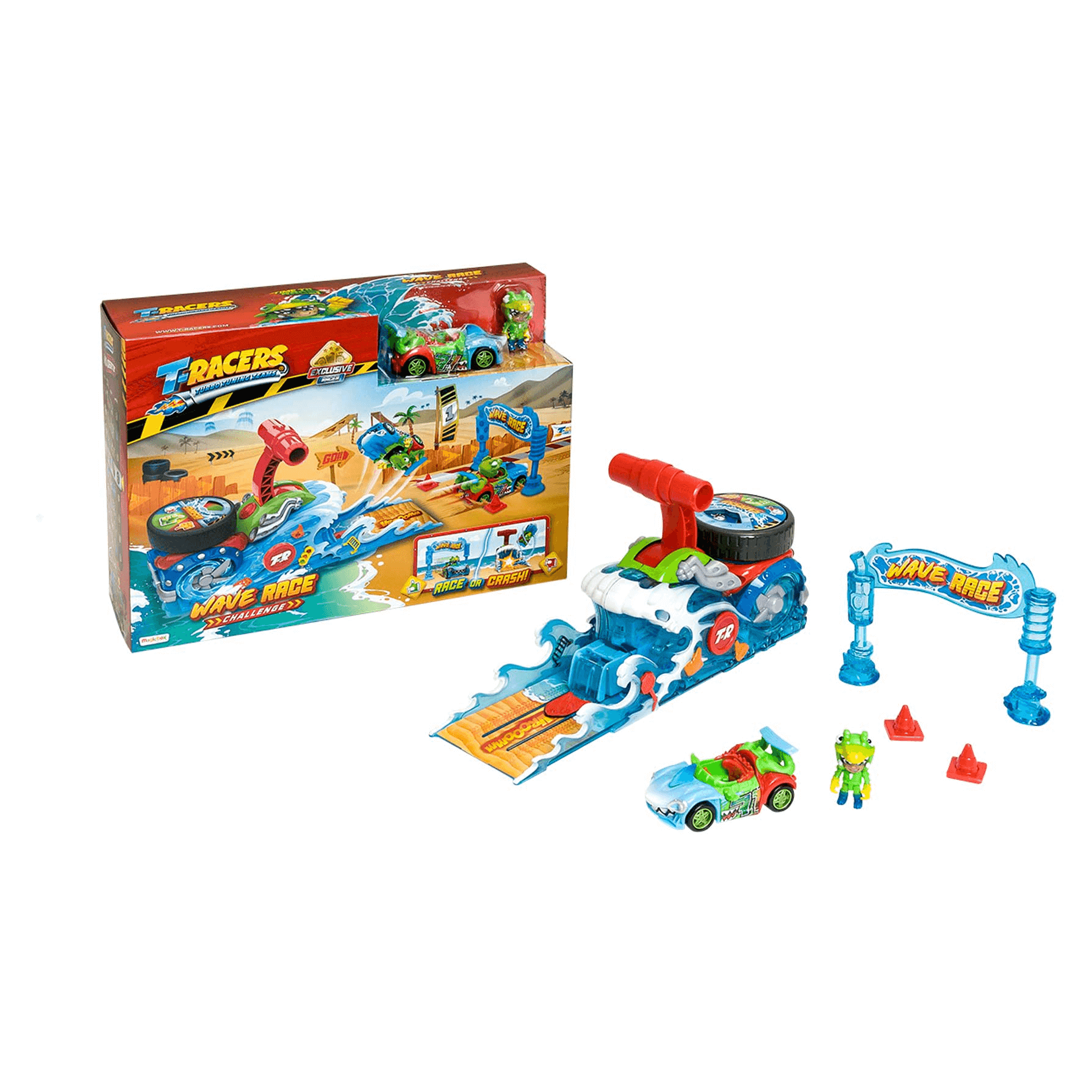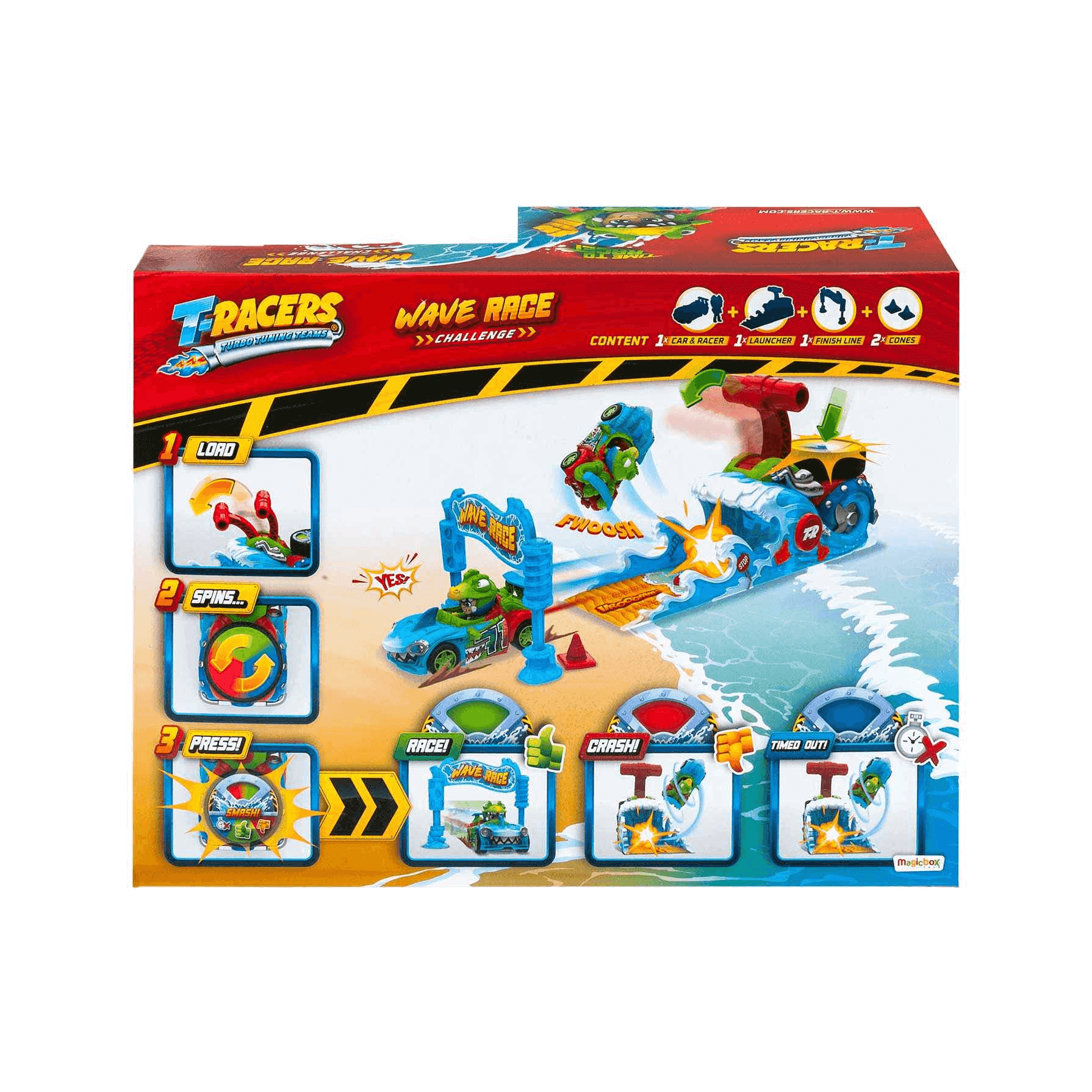 Con este juguete debes utilizar con precisión el disparador y la potencia del disparo para salir rápido o despedido por los aires para ganar. Con el botón rojo, las olas se tragarán a Croco, mientras que el azul muestra que has esperado mucho tiempo y terminarás mojado y enojado. Presiona mejor el verde para que tu T-Racer salga volando rápido, pero mantén el equilibrio para no caer en el fondo del mar.