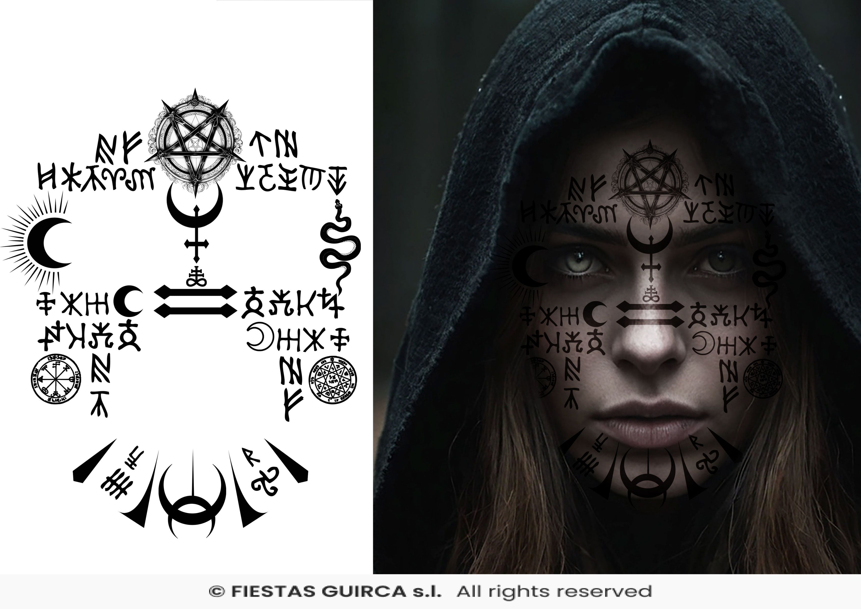 - Diseño grande y llamativo con símbolos satánicos y esotéricos.