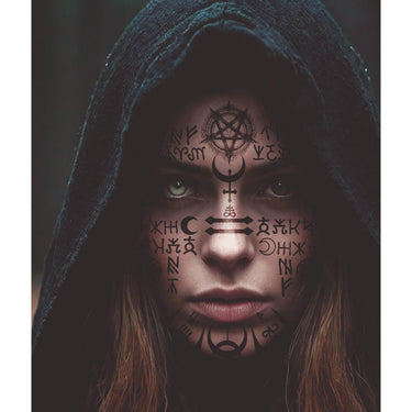 ¡Convierte tu rostro en una auténtica invocación oscura con el Tatuaje Facial Satánico 30 x 13 cm! Una calcomanía de gran tamaño con símbolos místicos, runas y detalles esotéricos que aportan un efecto impactante y terrorífico a tu caracterización. Perfecto para Halloween, fiestas temáticas, teatro o rodajes.