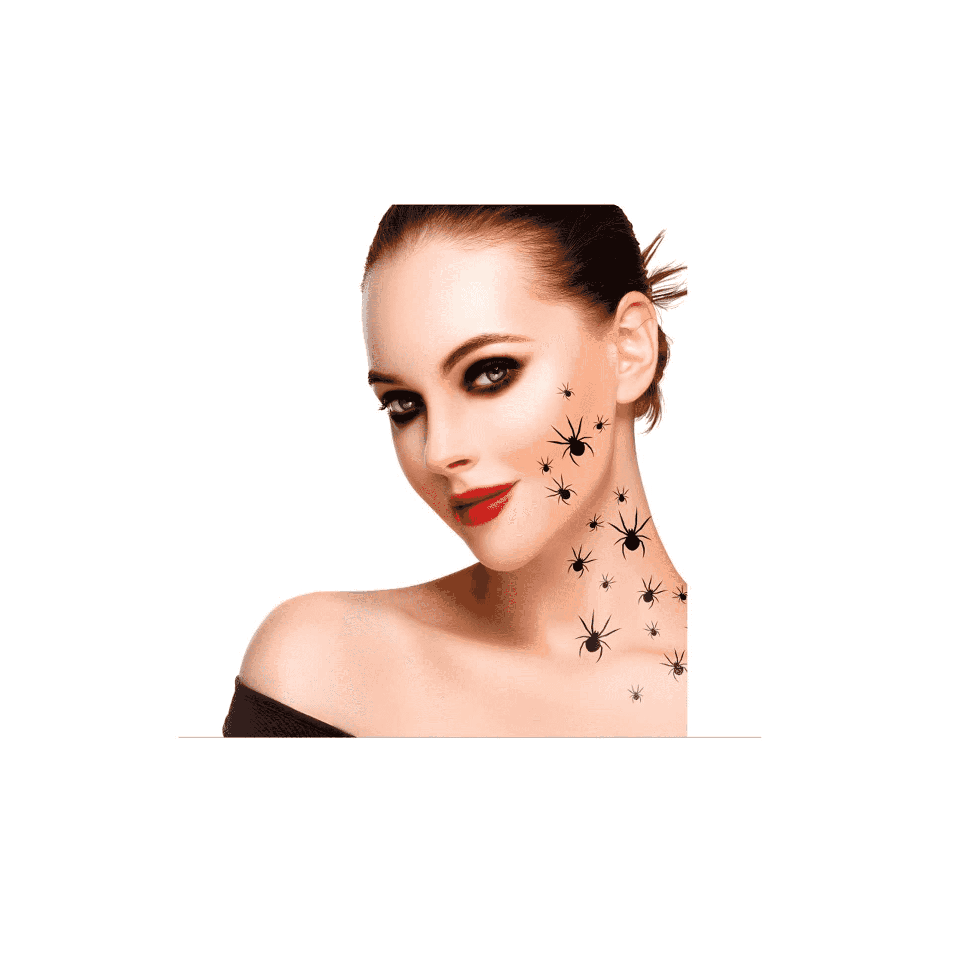 ¡Prepara tu piel para la noche de Halloween con estos impactantes tatuajes de arañas en color negro! Este paquete incluye 16 tatuajes de arañas, lo que te proporciona un toque espeluznante a tu aspecto.