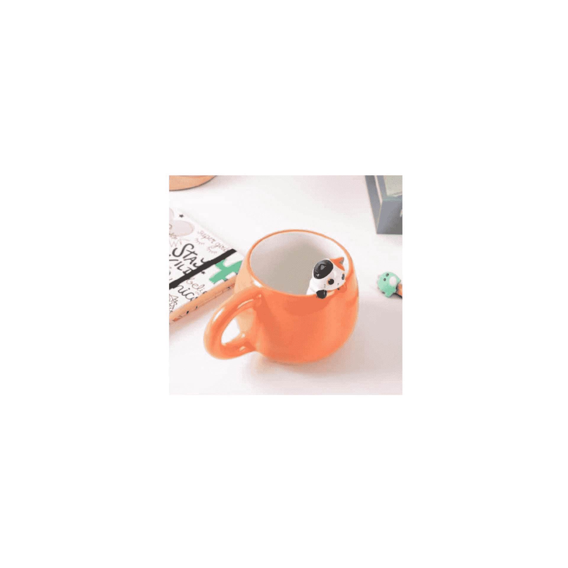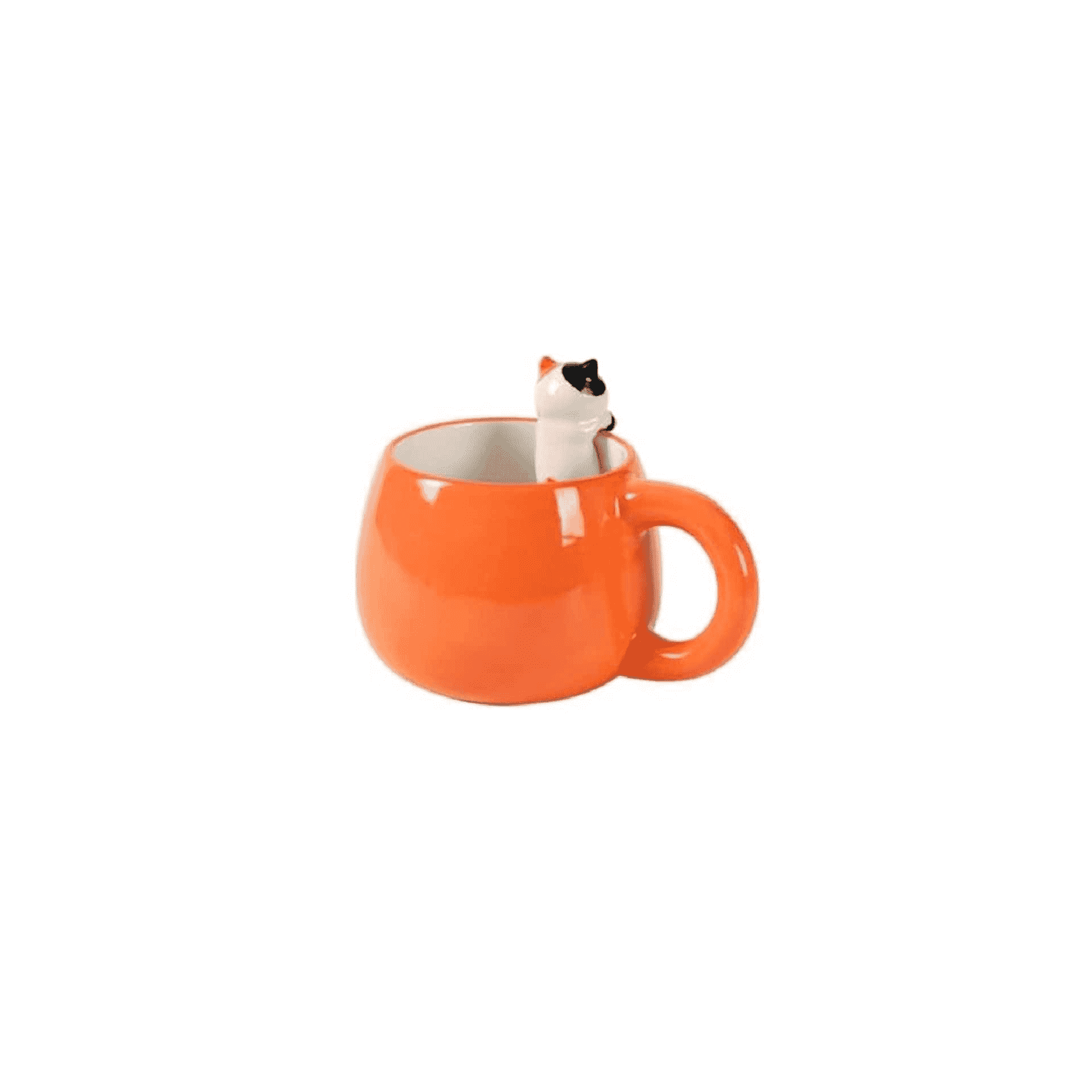 Disfruta de tus bebidas con la encantadora Taza de Cerámica con Charm Gato Naranja