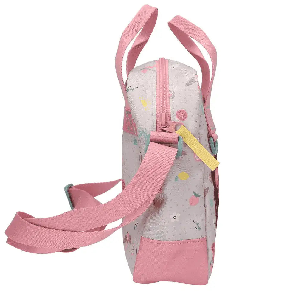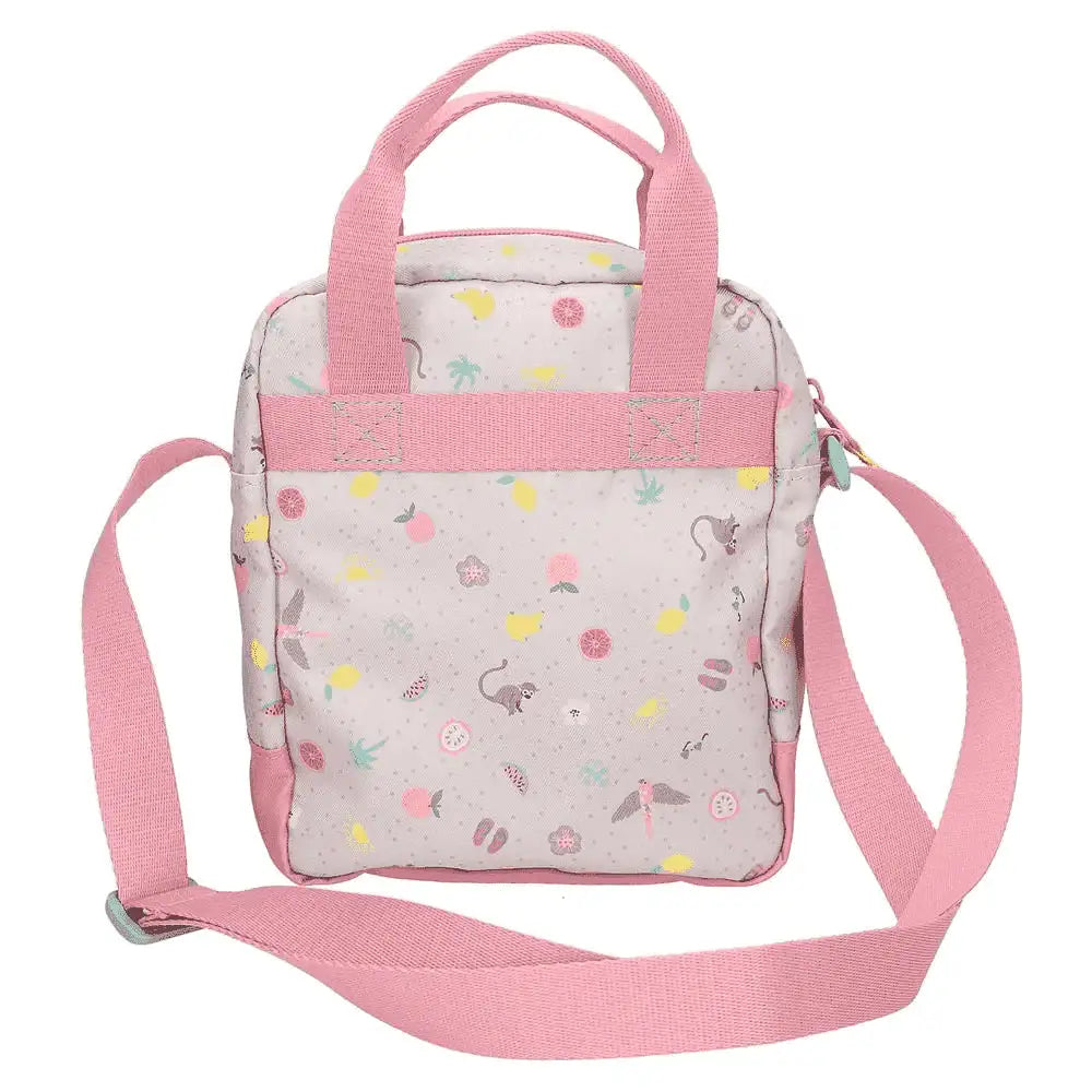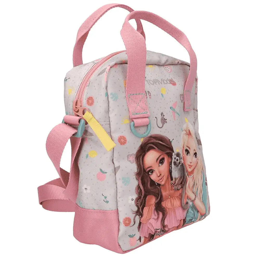 Descripción del producto: Animaladamente afrutado y mono. El bolso bandolera Juicy de TOPModel lleva en la cara delantera dos modelos con un monito sobre un fondo muy alegre de lunares, flores, frutas, pájaros, monos, palmeras y motivos veraniegos. Las asas, la bandolera ajustable y la cremallera son rosa. La cremallera lleva un tirador textil amarillo. En el interior dispone de un bolsillo extra. Cool: en la base del asa lleva una anilla decorativa.