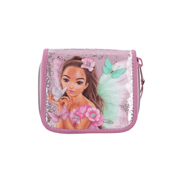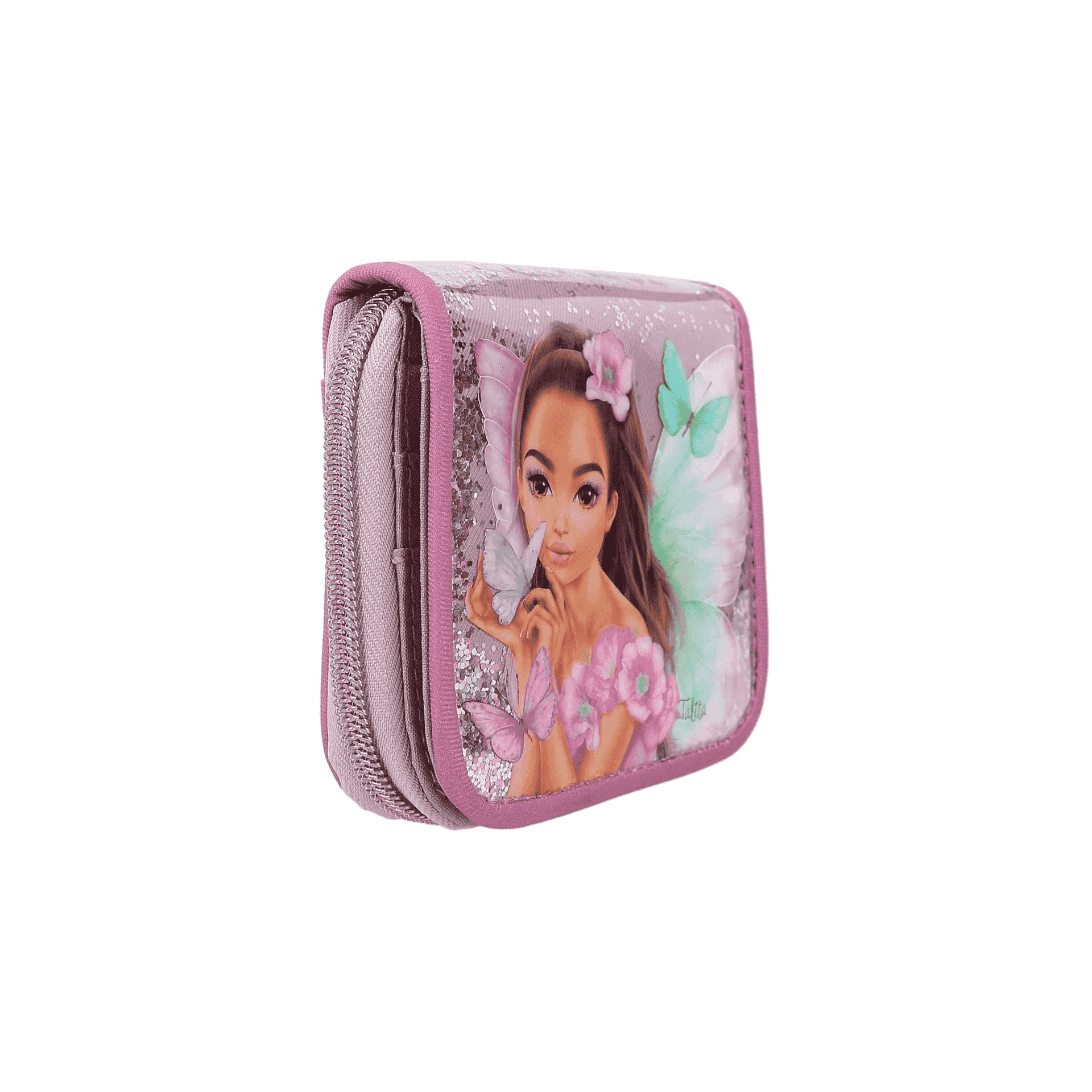 ¡Mágico y fantástico! La cartera TOPModel FAIRY LOVE presenta un diseño encantador con un fondo color malva adornado con purpurina. En el centro, destaca una hada fantástica rodeada de delicadas mariposas estampadas, lo que le da un toque mágico y especial.