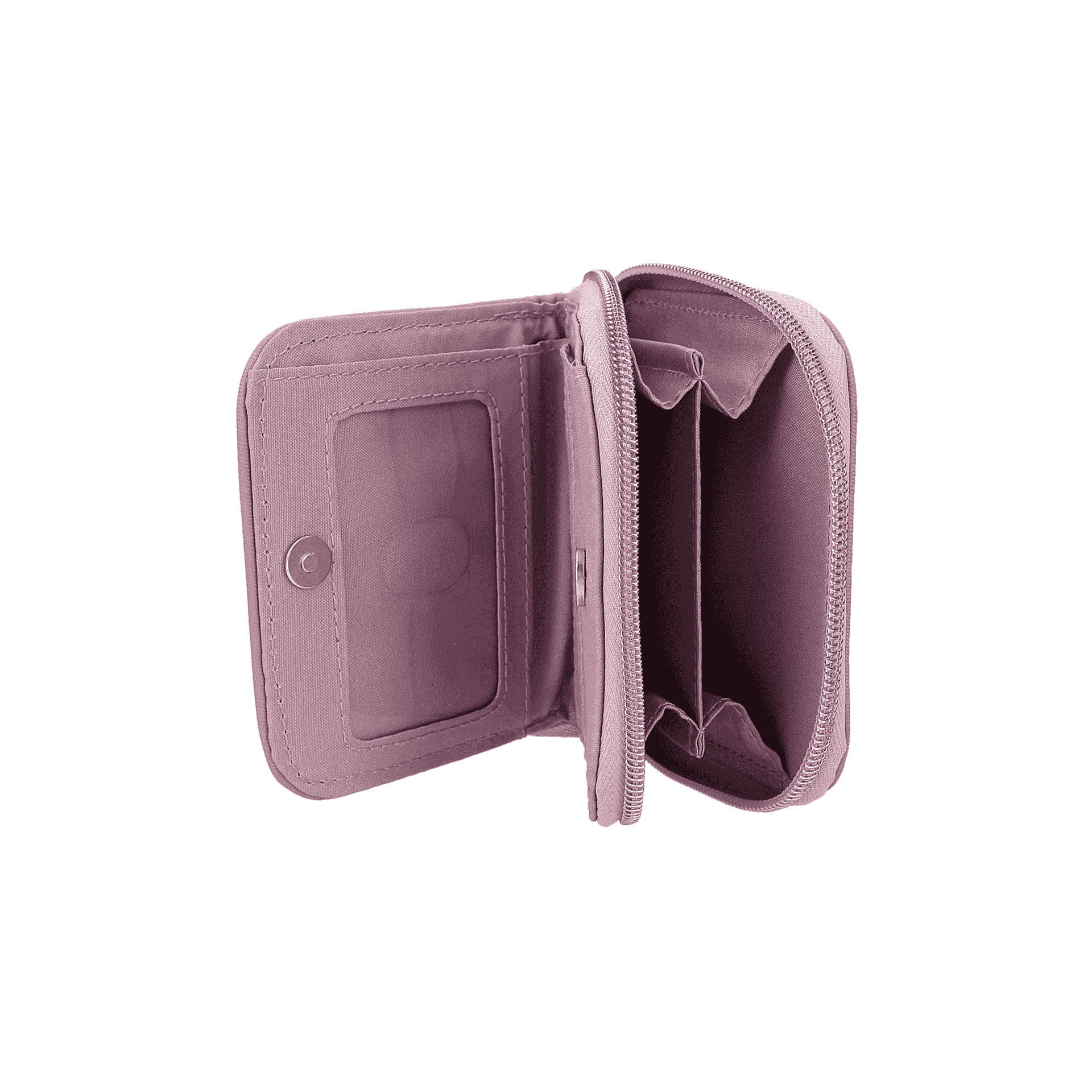 Este monedero cuenta con un botón de presión y una cremallera segura, asegurando que todas tus pertenencias estén protegidas. Además, dispone de varios compartimentos diseñados para monedas, billetes y tarjetas, incluyendo una ventana transparente para el nombre, ideal para personalizarlo.
