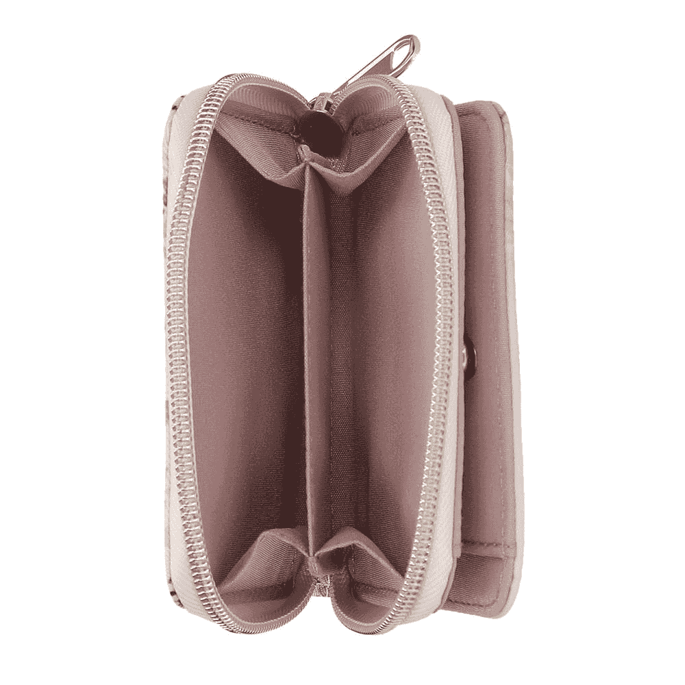 Descripción del producto: El monedero pequeño en tonos rosa suaves lleva en la cara delantera un romántico motivo de una modelo, mientras que la parte trasera está adornada con un bonito estampado allover de delicadas flores y mariposas. Con compartimento con cremallera para monedas, apartado para billetes y varios tarjeteros. Dimensiones: 3x8,5x11 cm aprox. Material: poliéster 100 por 100.
