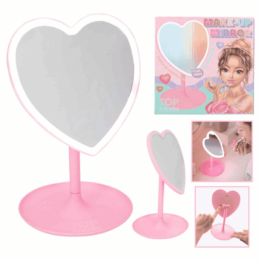 Espejito mágico, dime quién es la más guapa del lugar. El borde de este espejo de maquillaje rosa con forma de corazón está provisto de luces LED, lo que garantiza una iluminación perfecta para realizar la rutina de belleza. El pie redondo del espejo está diseñado para poder depositar objetos pequeños como, por ejemplo, joyas. El espejo es reclinable. De TOPModel. Incluye 3 pilas (AAA, 1,5V). Material: poliéster reciclado 100 por 100; lazo: algodón 100 por 100. compartimentos muy espaciosos, asas acolchadas, tirantes acolchados ajustables, base con tratamiento antimanchas y antihumedad, guardabarros para que las ruedas no manchen la ropa al llevar la mochila a