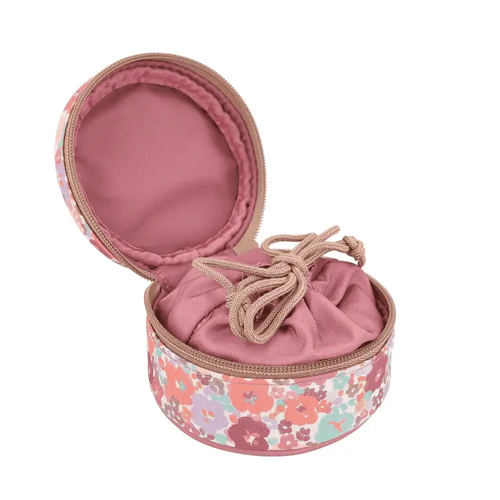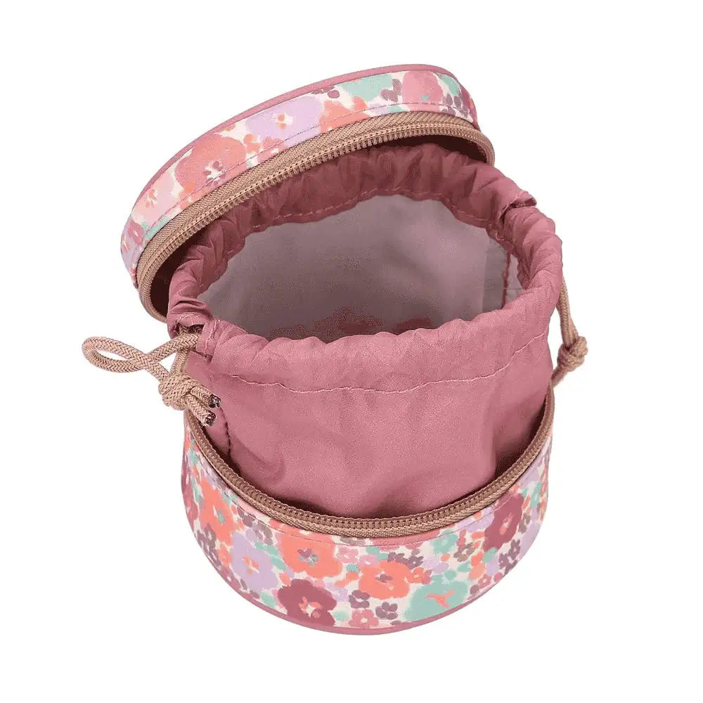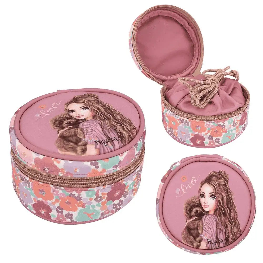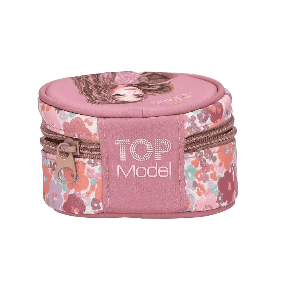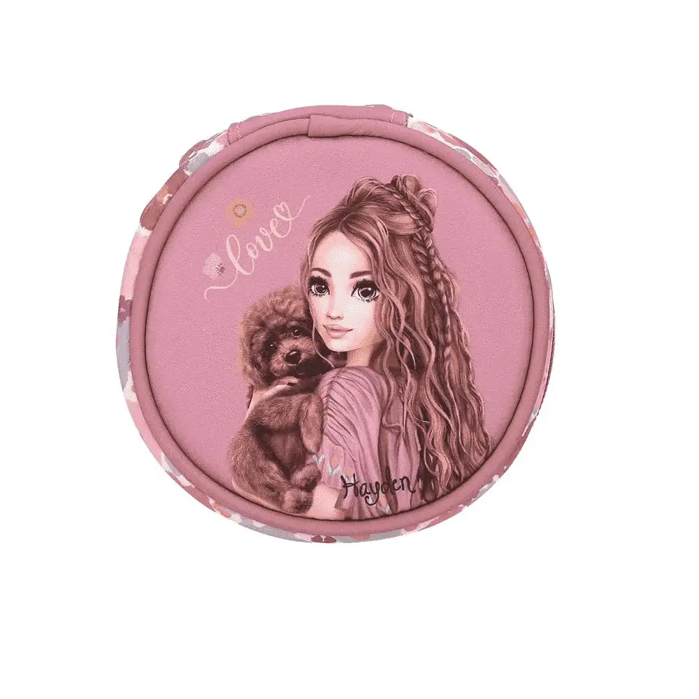 Descripción del producto: Fantásticamente Floral. El joyerito redondo de la nueva colección de diseño de TOPModel lleva como motivo principal de la cara delantera color baya una guapa modelo con un perro monísimo en brazos. La parte inferior es de terciopelo en el mismo colorido y tiene pespunteado tendencia formando rombos. Cierra con cremallera y en el interior también lleva un cordón para ajustar y cerrar. Material: poliéster 100 por 100.