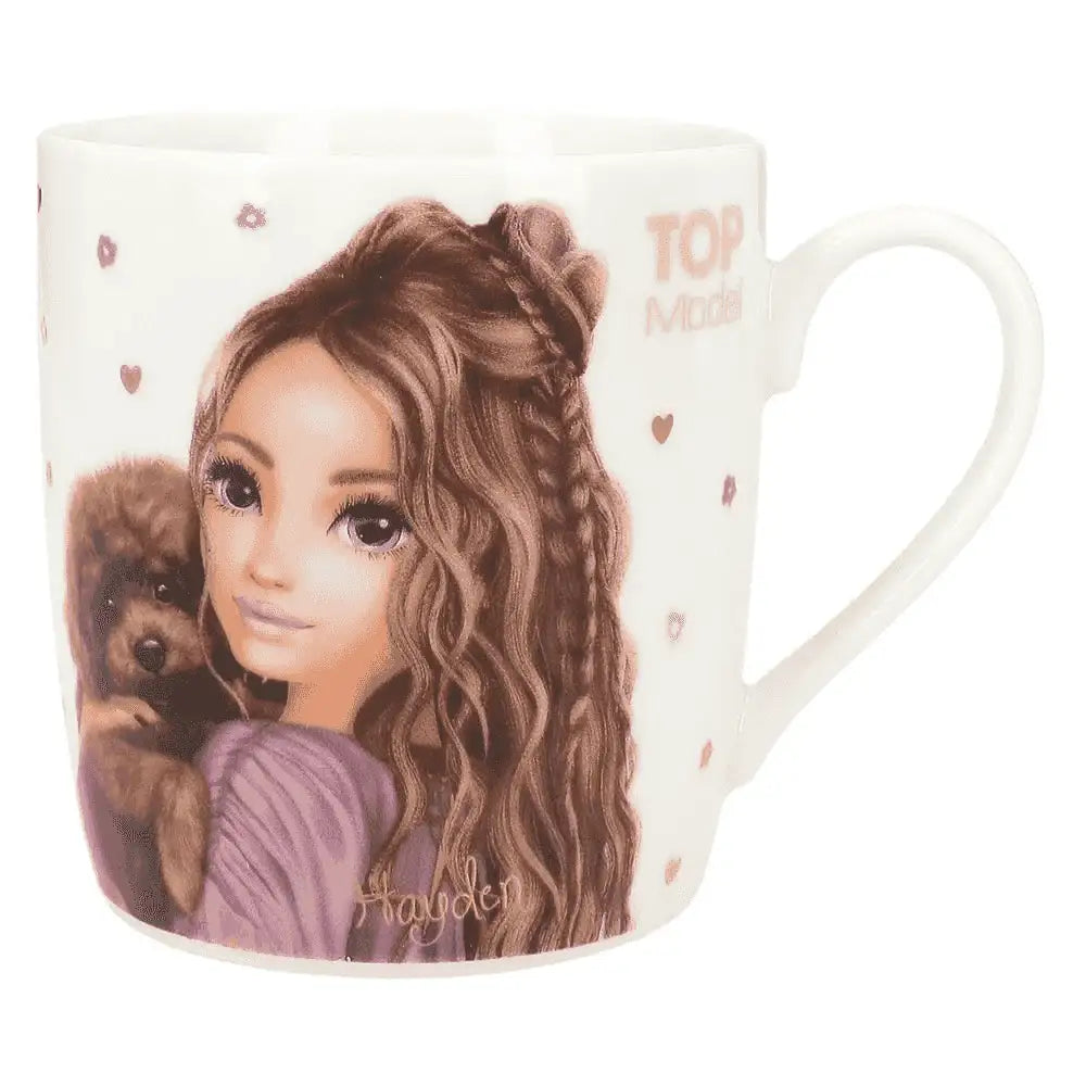 Descripción del producto: Una taza de TOPModel con mucho corazón. Toda ella está adornada con corazones y flores monísimos y como motivo principal lleva una modelo con un perro muy dulce. Por la otra cara lleva impreso un corazón con texto escrito con caligrafía tipo handlettering. Debido a la decoración dorada esta taza no es apta para lavavajillas ni microondas. Material: porcelana New Bone China.