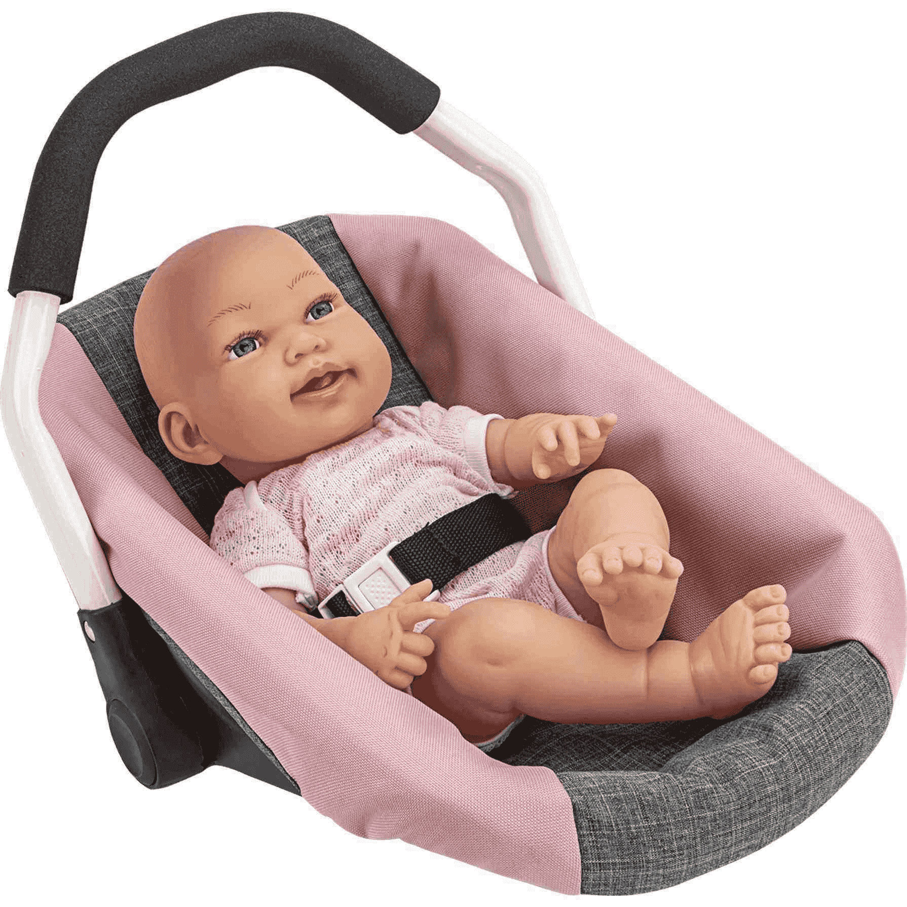 Es una silla ideal para muñecas que miden entre 45 y 48 cm. Vale la pena destacar que la muñeca no se encuentra incluido con el transportín. La decoración que posee es exclusiva de la marca PequeBB, y sus asientos han sido fabricados de la mejor calidad.