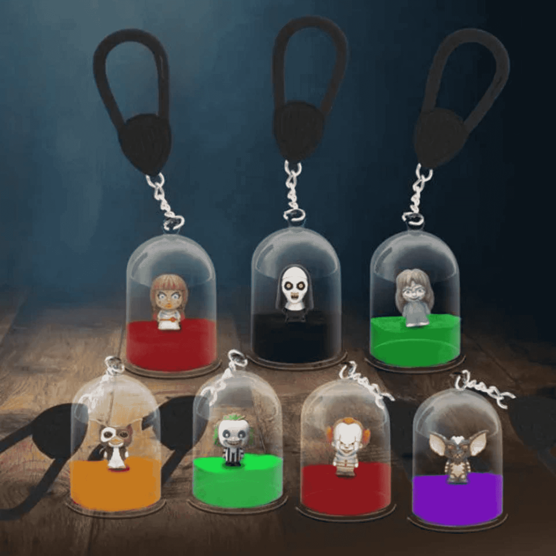 - Llavero sorpresa de terror: Cada bolsa misteriosa incluye un personaje aleatorio de películas como IT, Annabelle, Beetlejuice, The Nun, Gremlins, The Exorcist y más.