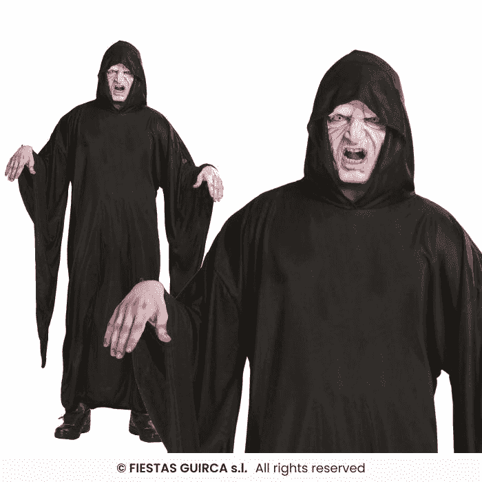- Perfecta para disfraces de la Muerte, espectros, monjes oscuros o villanos de terror.