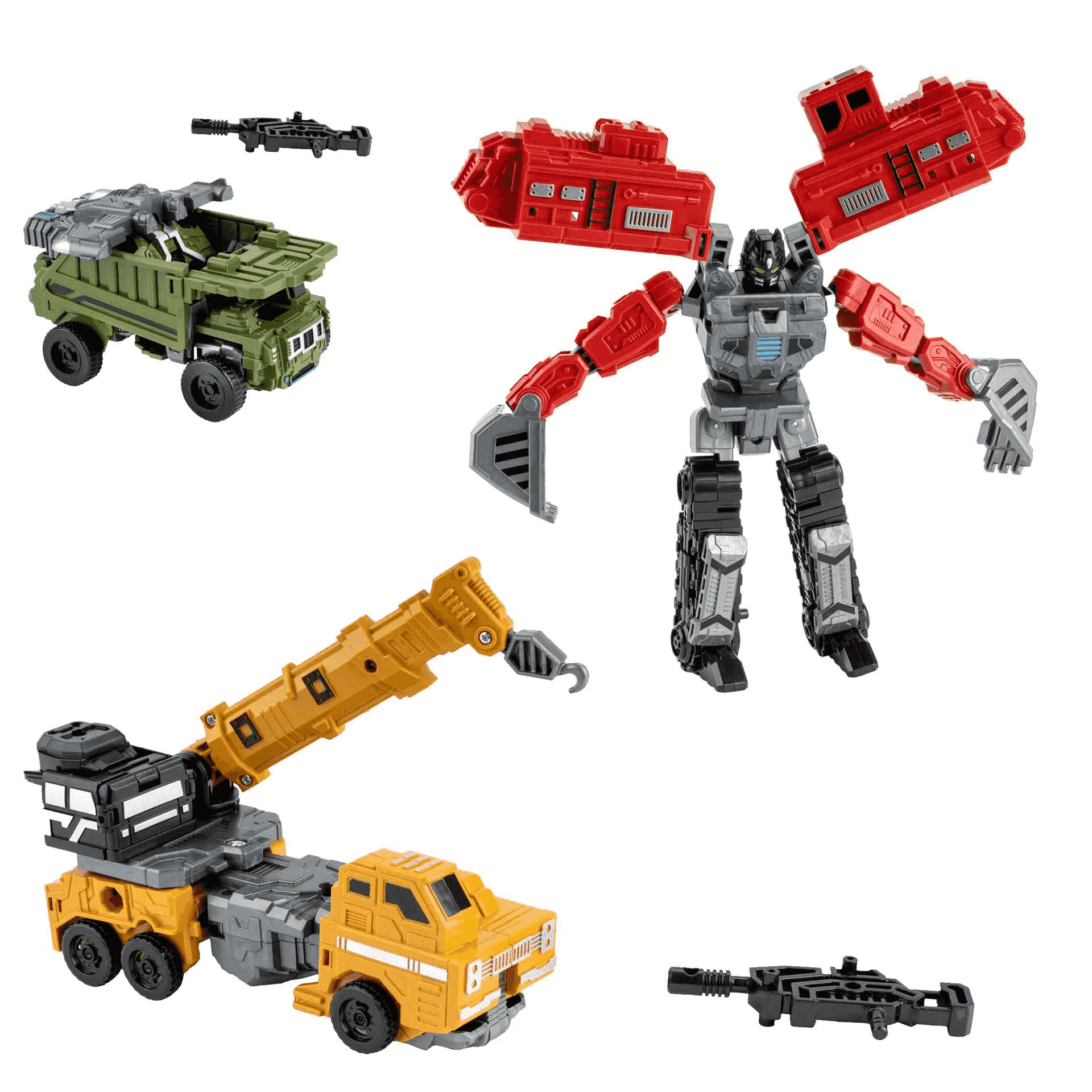 Lo asombroso de estos juguetes es que no solo son vehículos realistas de construcción, ¡sino que también se transforman en robots poderosos! Con solo unos sencillos pasos, puedes convertir cada vehículo en un formidable robot listo para la aventura y la batalla.