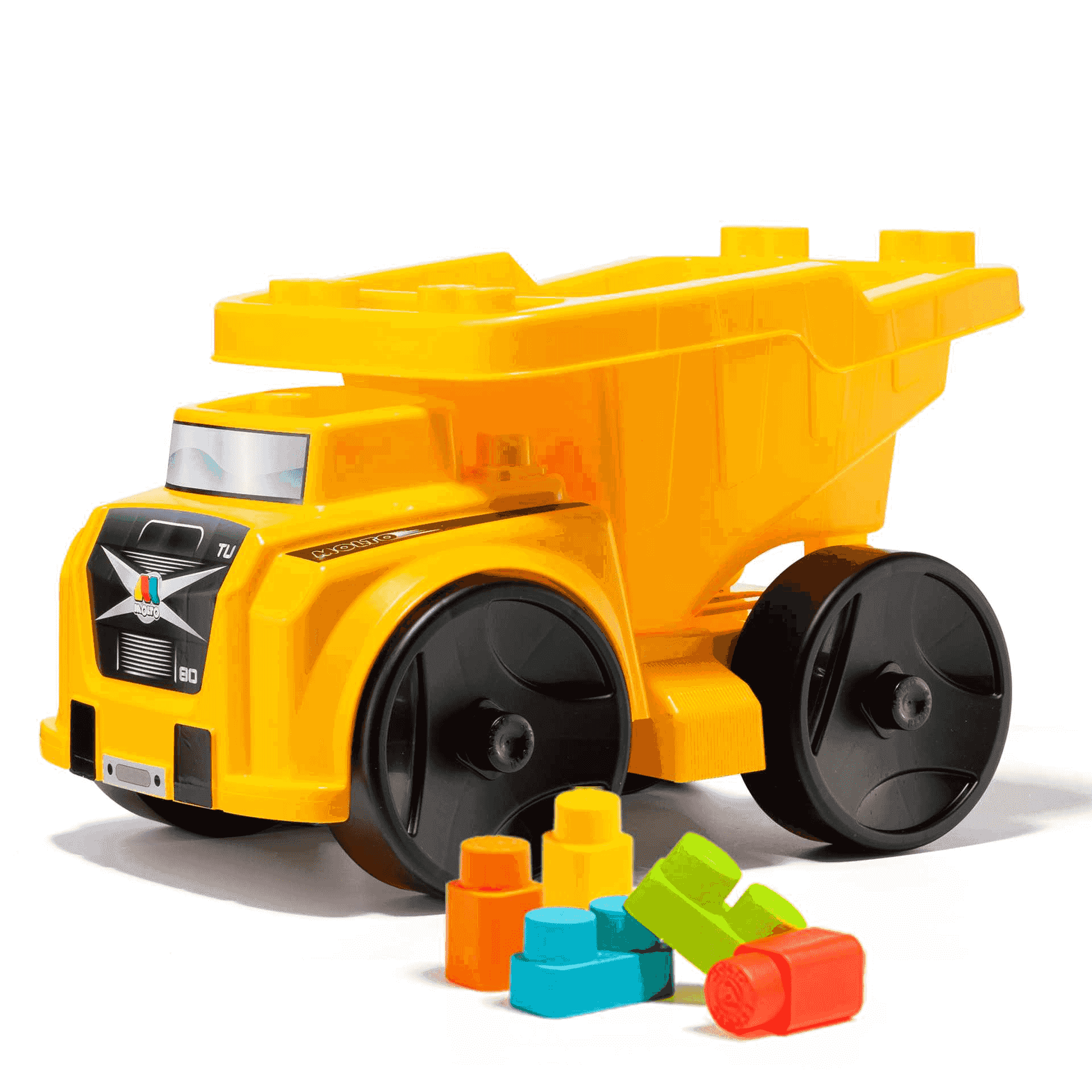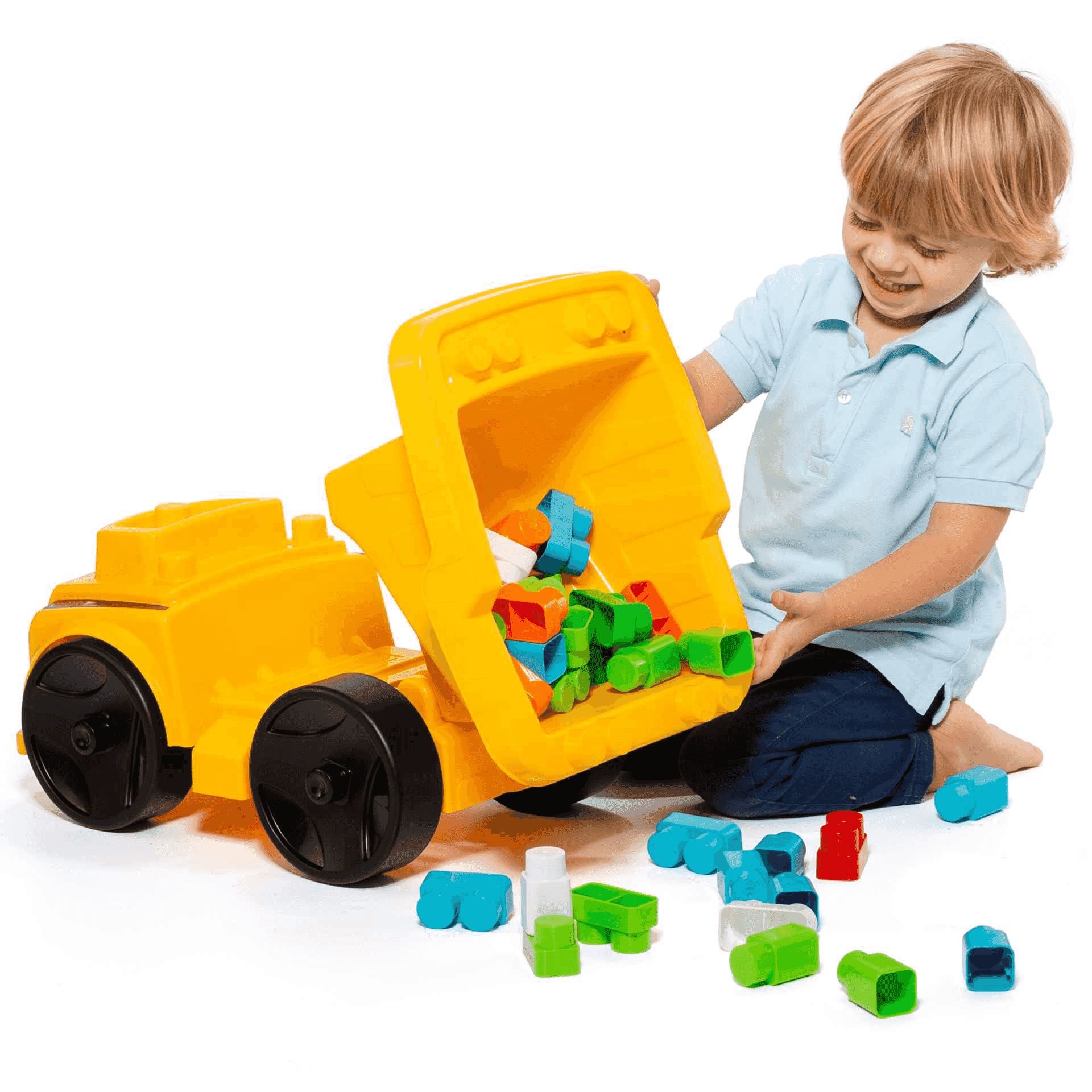 - Incluye piezas de construcción: Viene con bloques que permiten a los pequeños construir diversas estructuras y luego transportarlas en el volquete.