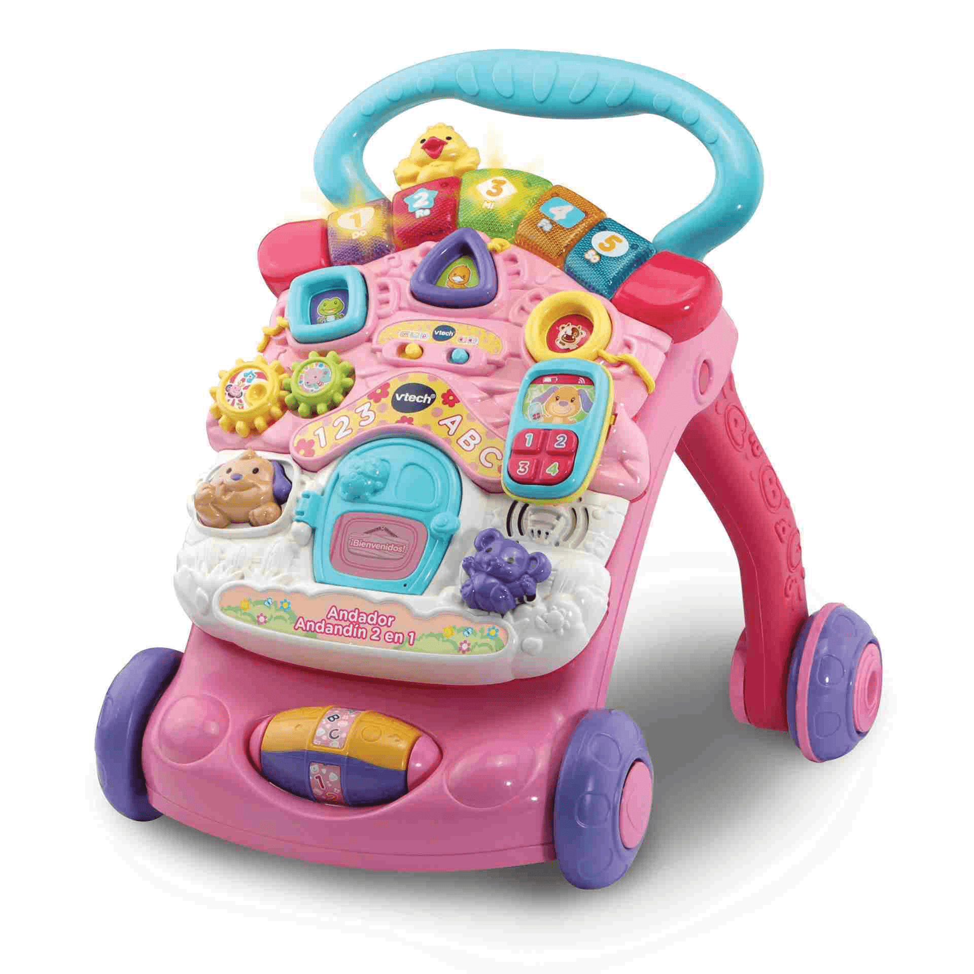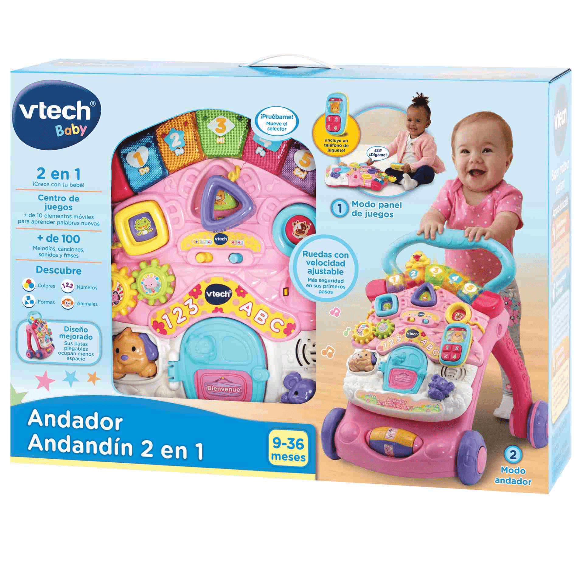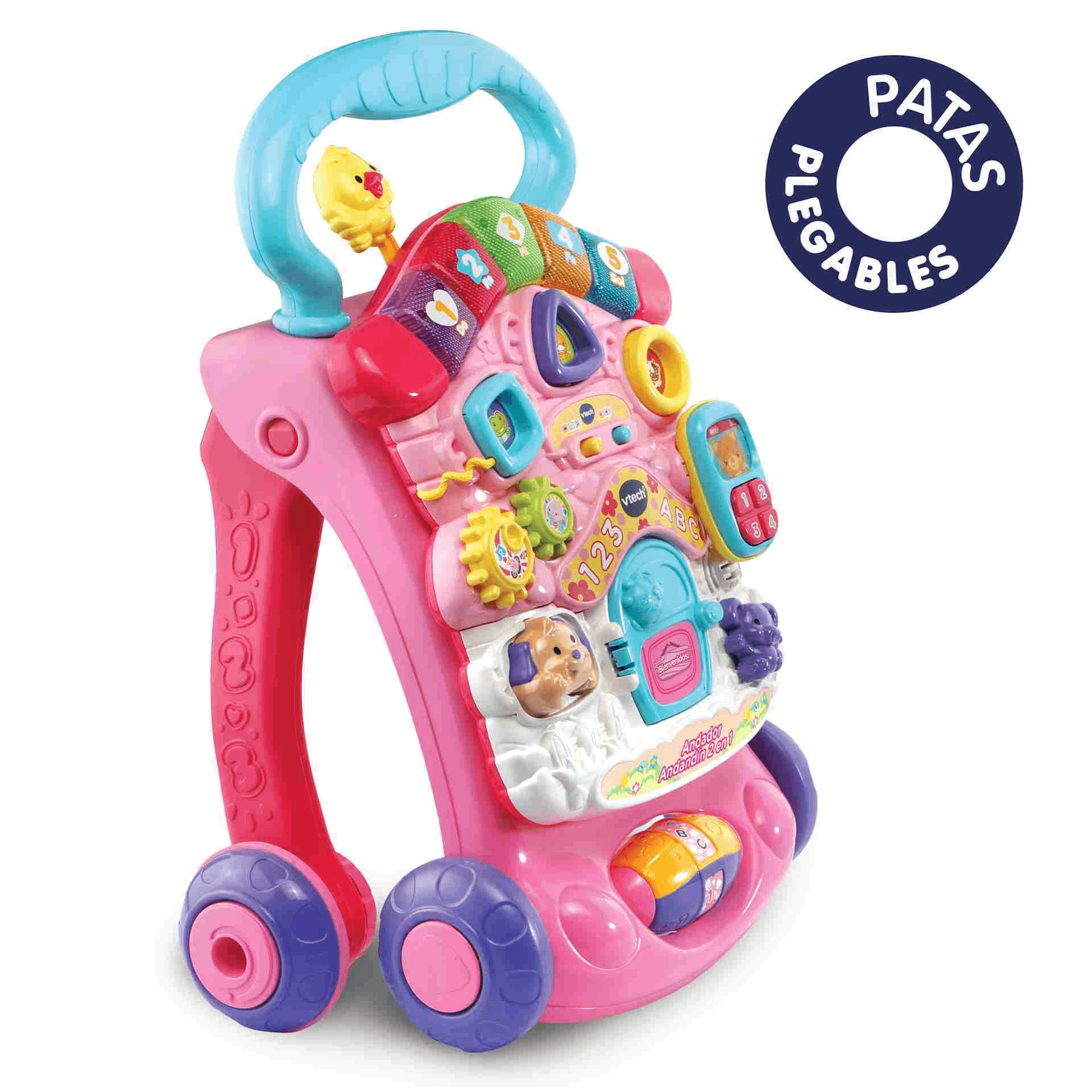 VTech Andador Andandín 2 en 1 rosa, Correpasillos con patas plegables, panel extraíble y regulador