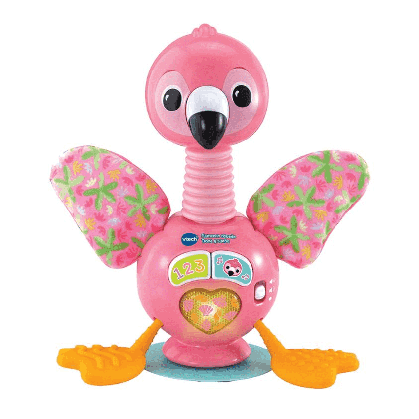 El Flamenco Risueño Trona y Sueño de VTech Baby es un juguete interactivo pensado para acompañar al bebé durante la hora de comer y también estimula sus sentidos durante el juego tranquilo. Con un diseño adorable de flamenco en tonos suaves, este juguete combina elementos táctiles, sonidos y efectos visuales para hacer de cada momento una experiencia sensorial y divertida.
