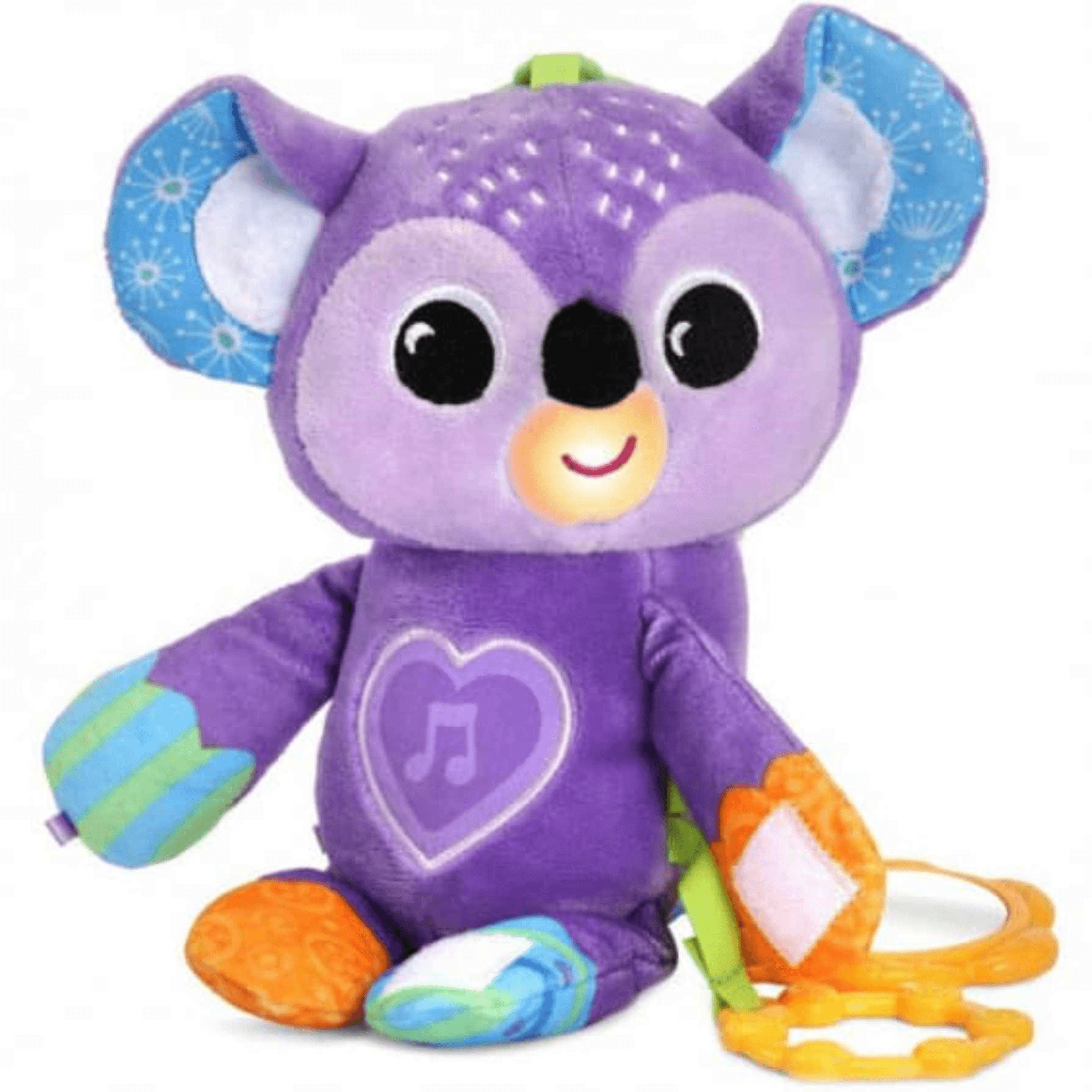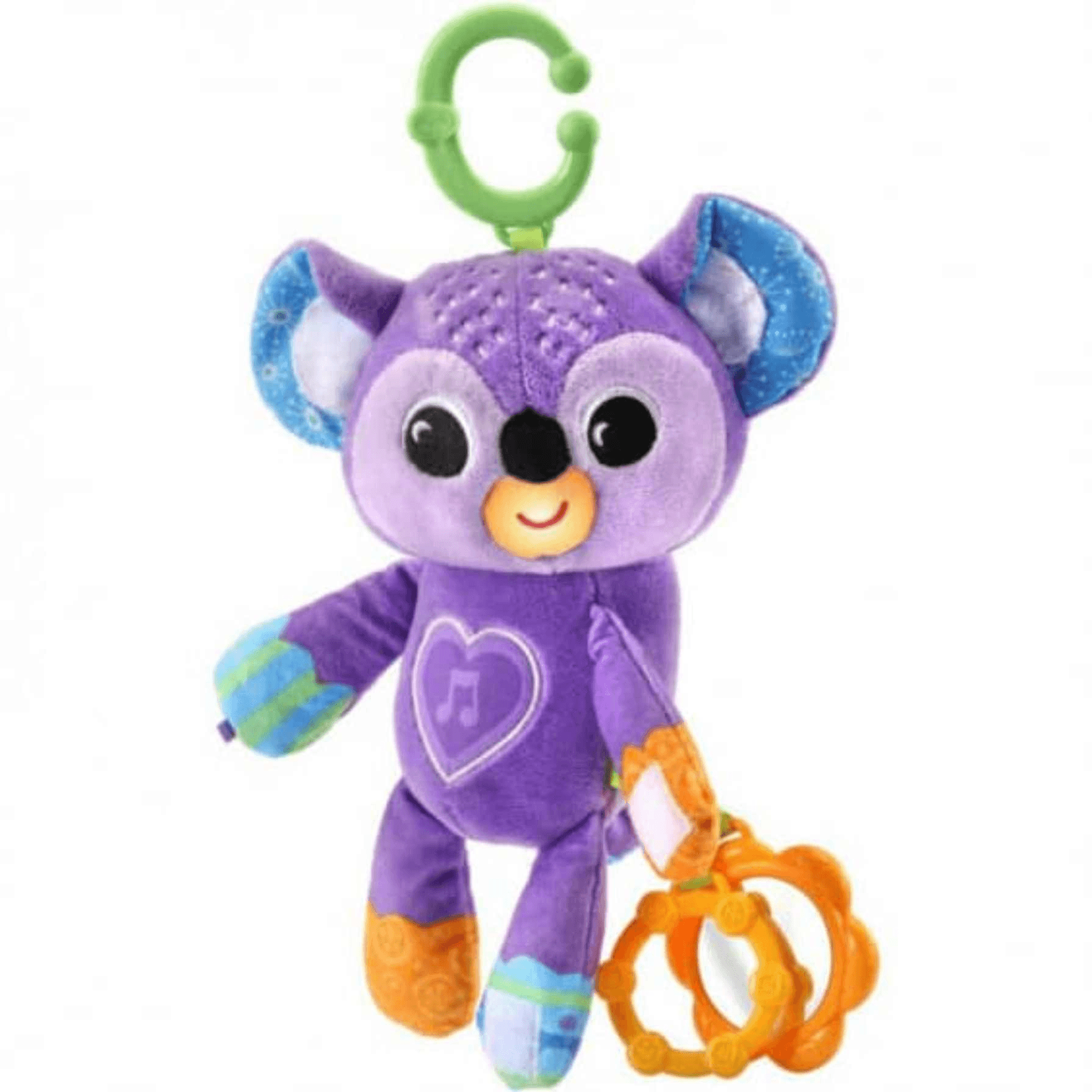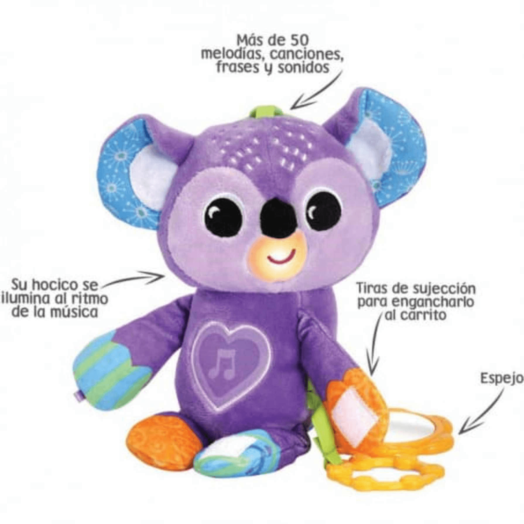- Suave peluche musical con forma de koala que se puede sujetar en diferentes soportes y acompañar al bebé en su carrito.