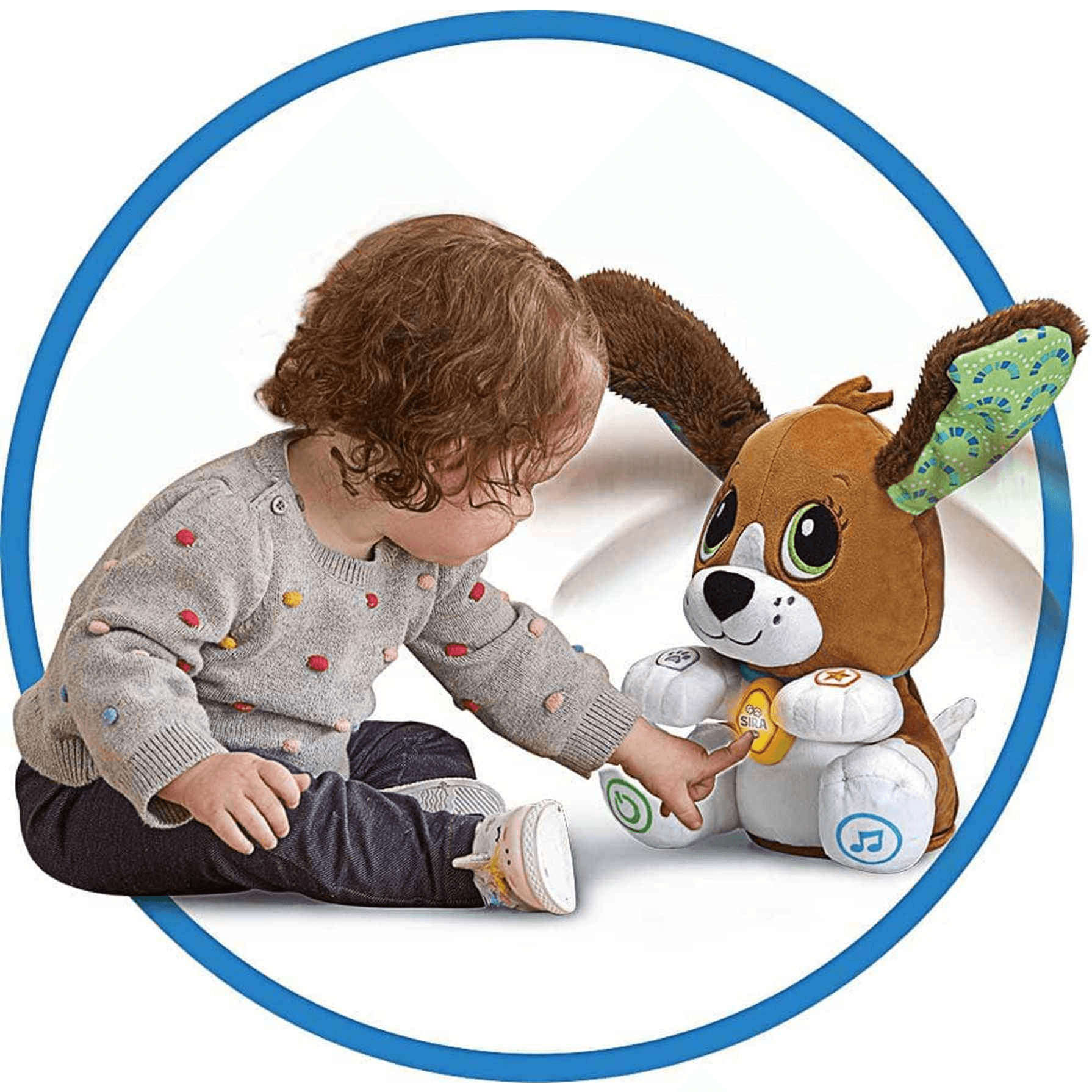 ¿Te imaginas a tu hijo o hija con un juguete para cantar, reír, bailar y también aprender? Si deseas regalar uno así, te presentamos a Sira, ¡La Perrita Interactiva! El juguete peluche mueve su cabeza y orejas y hará que tu pequeño se ría. Además, al tocar su collar, cantará las muchas canciones que tiene. ¡Bailará y aprenderá a hablar! Sira es tierna y cariñosa. Tiene botones en sus patas para activar sus acciones. Es un juguete de aprendizaje para los niños y niñas de 1 a 5 años.
