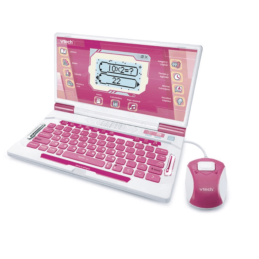 ¿Qué es y qué incluye? Se trata de un ordenador portátil infantil con pantalla LCD clara, teclado QWERTY real y ratón adaptable a diestros y zurdos. Tiene más de 160 actividades educativas —80 en español y 80 en inglés— que abarcan lectura, matemáticas, ciencias, lógica, arte y música. Incluye herramientas prácticas como bloc de notas, calculadora, agenda, traductor y temporizador, así como juegos clásicos como sudoku y tres en raya y un reproductor con 20 melodías para combinar diversión y aprendizaje. Funciona con 4 pilas AA incluidas para poder jugar desde el primer momento. :contentReference[oaicite:2]{index=2}