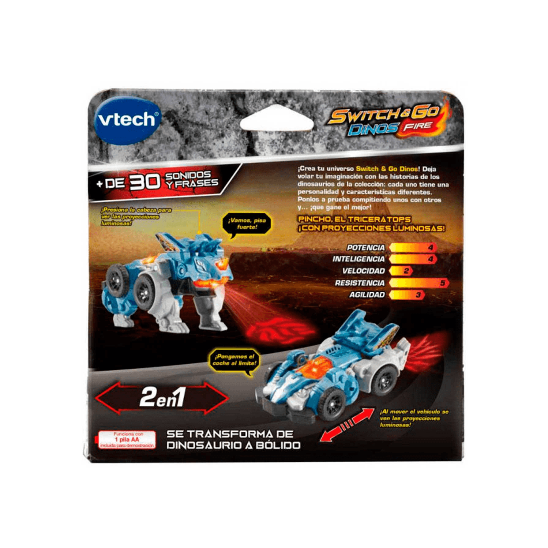 - Dinosaurio Pincho El Triceratops, que se transforma en vehículo con un solo ‘click’.