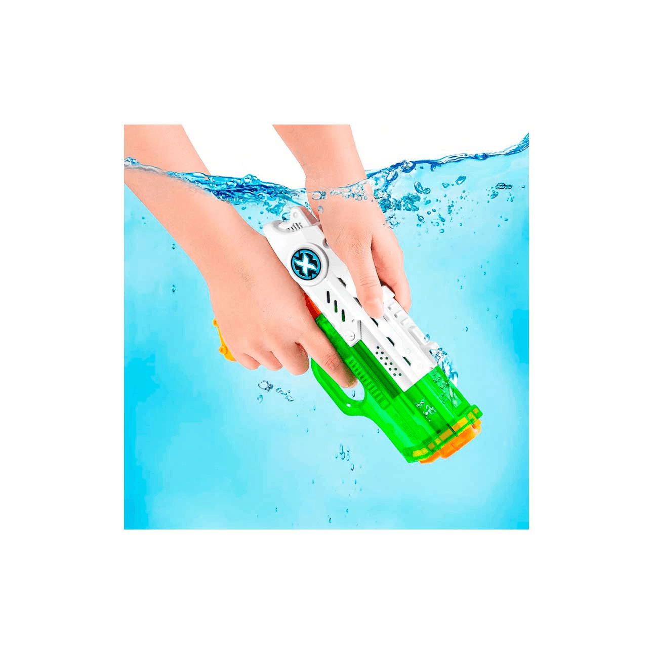 El X-Shot Nano Fast-Fill de llenado rápido te permite llenar tu pistola de agua en solo un segundo y reanudar la pelea mucho antes que tus oponentes. Solo tienes que sumergirlo en el agua, tirar de la escotilla y cerrarla gracias a la tecnología de cierre rápido. Pequeño y potente, dispara hasta 9 metros y su depósito contiene 100 ml.